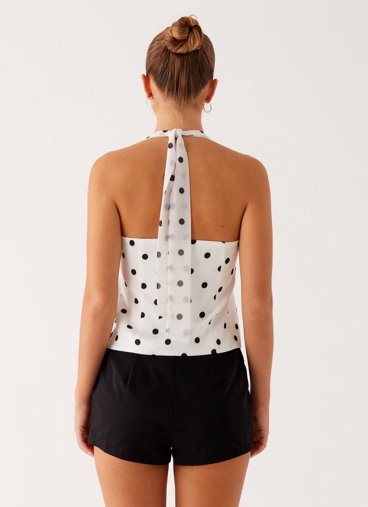WHITE POLKA DOT HALTERNECK TOP